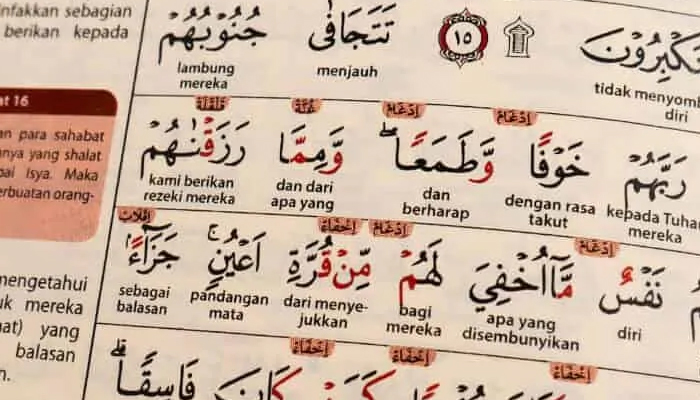 Berbeda dengan Huruf Qof (ق) dalam ejaan dibaca menjadi Qoof (قَافْ) -> setelah huruf Mad Alif terdapat “Sukun Asli” pada Huruf Fa’ (فْ) maka ini adalah Mad Lazim Harfi Mukhoffaf.